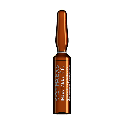 RRS® HA Eyes es un implante intradérmico especialmente formulado para mejorar el aspecto de la piel alrededor de los ojos. Contiene ácido hialurónico no reticulado, reabsorbible, asociado a un buffer protector que incluye vitaminas, antioxidantes, activos microcirculatorios y agentes unificadores/aclarantes.